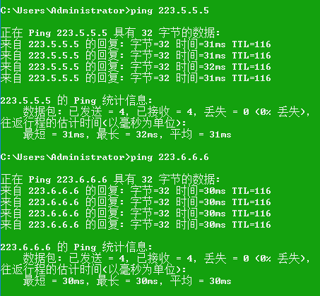 注意一下有的值为“请求超时”,原因是有的路由器是禁止Ping的,所以不会返回信息。