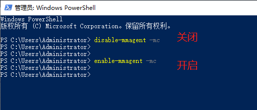 若需要开启,输入“Enable-MMAgent -mc”按回车键,开启内存压缩。