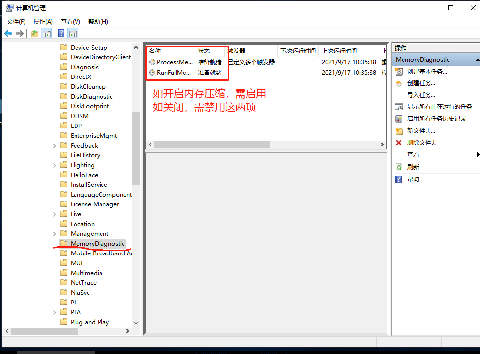 如果你启用了内存压缩,这两个任务计划也需要启用,如果你禁用内存压缩,可把这两项任务计划禁用。