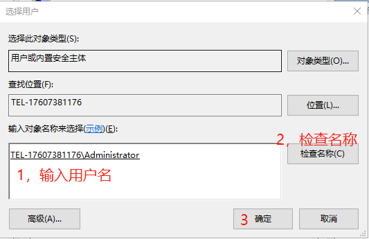 打开后点击“添加”按钮,在白色框内输入你电脑的用户名(administrator),如果用微软账号登陆的电脑,输入微软账号邮箱即可,输入完成后点击旁边的检查名称,完成后点击确定。添加成功后成员里面就有了你这台电脑的帐户,确定之后重启电脑。