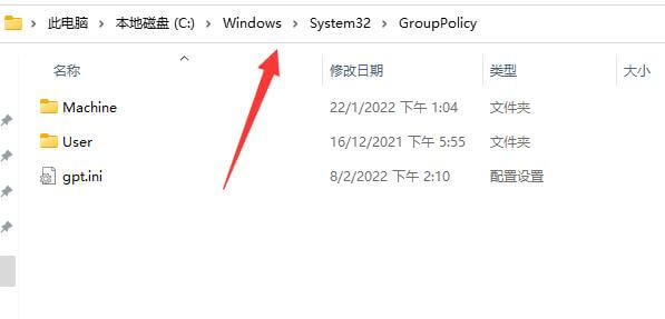2、再继续展开:System32 > GroupPolicy 文件夹;