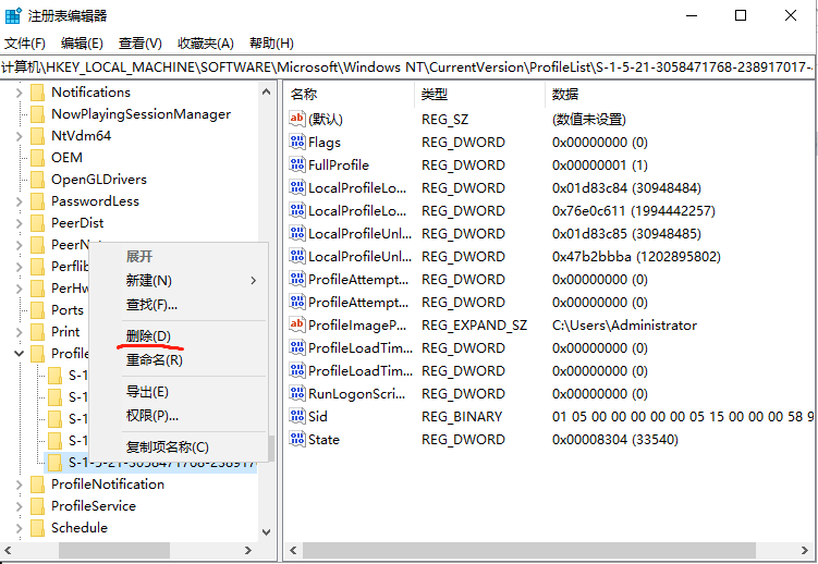 上面这个用户文件夹的NTUSER.DAT需在PE里才能删除。