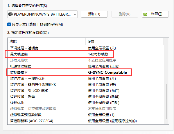 最大帧速率:142(显示器最大刷新率减1-4帧,G-SYNC需小于显示器刷新率才有效)