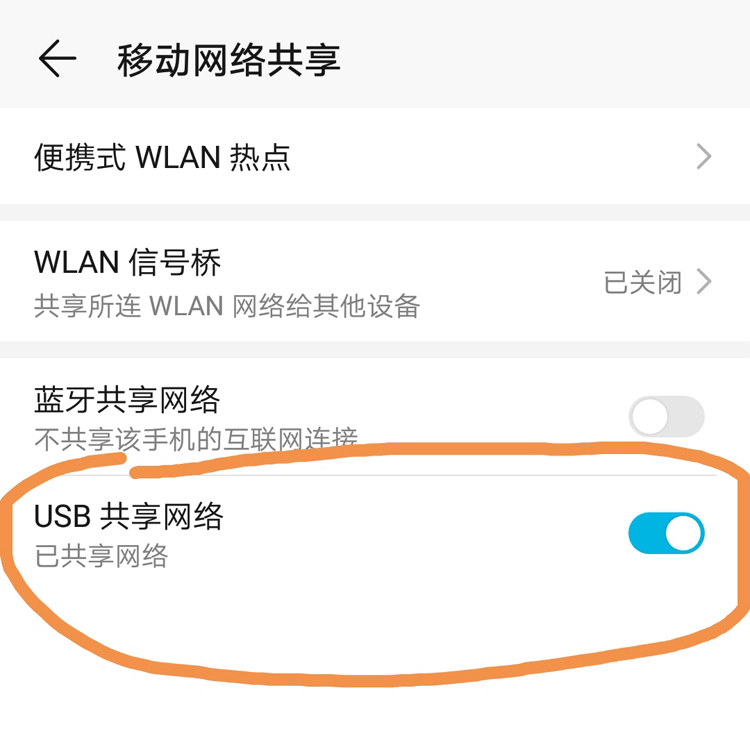 2、电脑没有无线网卡的情况,我们可以利用手机功能里“移动网络共享”中的“USB共享网络”,用手机数据线连接电脑,打开开关,电脑的网络连接里就会多出来一个“以太网”的本地连接,就能上网了,如果不能上网把之前本来就有的那个“以太网”本地连接右键禁用即可。