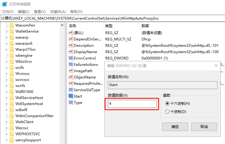 二、定位到此处注册表:“计算机\HKEY_LOCAL_MACHINE\SYSTEM\CurrentControlSet\Services\WinHttpAutoProxySvc”;