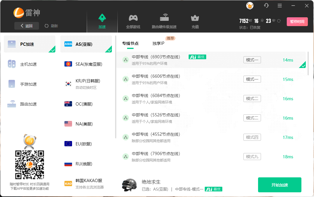雷神网游加速下载,使用金融级内网传输专线,网络游戏加速效果好,免费试用。玩家用户/网吧专用版本使用按分钟计费,不用可随时暂停时间,买一次相当于长久使用,雷神游戏加速好用且贴心,玩家/网吧必选!