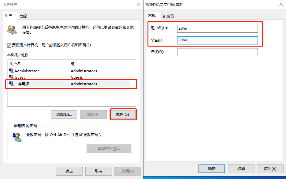 5、按win+r输入netplwiz,在弹出窗口中选择用户-属性-修改用户名和全名为刚刚设置的英文名-两次确定-完成后点击重启。