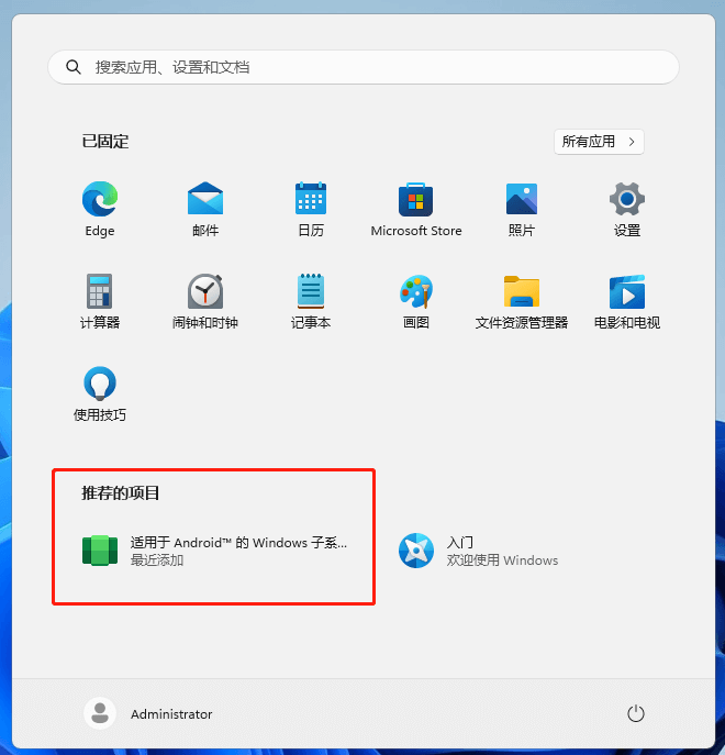 7.安装完成后,可以在Windows开始菜单中找到「Windows Subsystem for Android」的应用图标