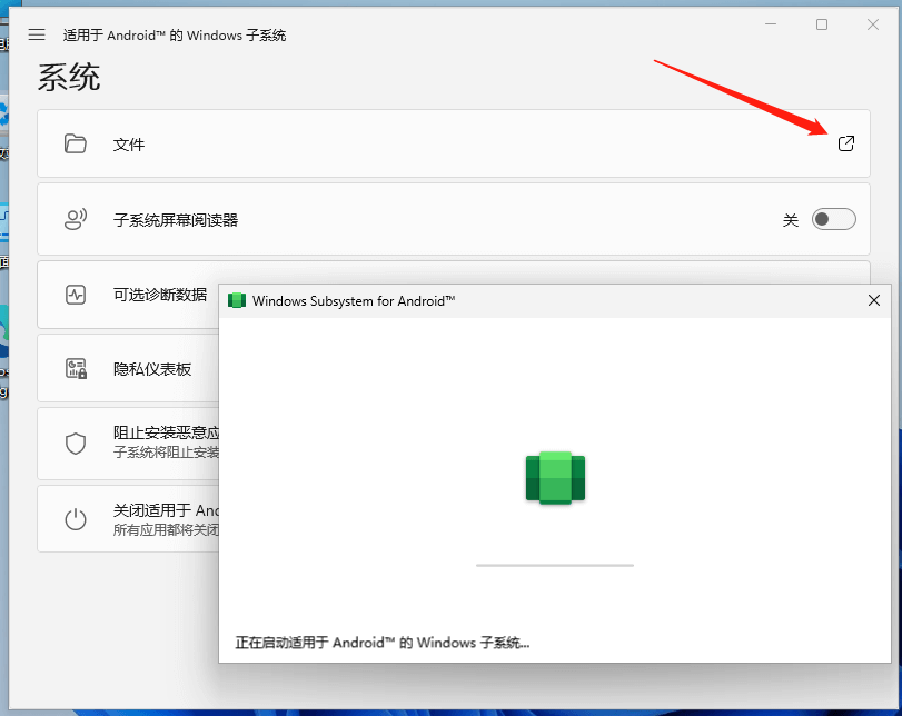 9.显示如下界面,表示安卓子系统安装成功