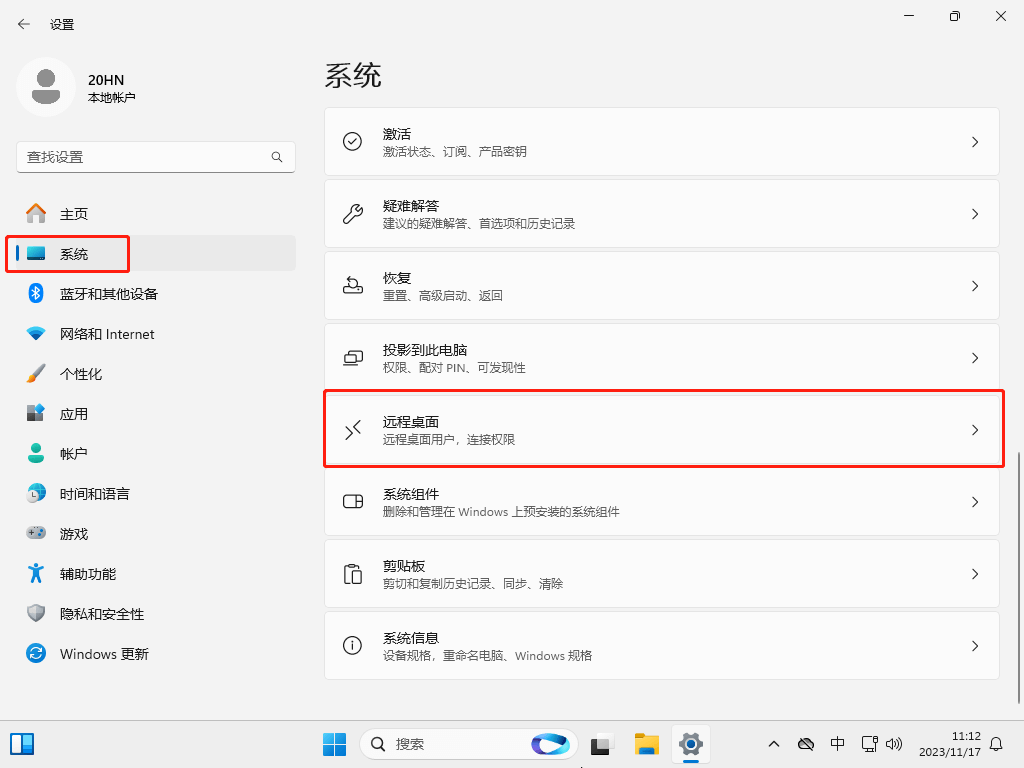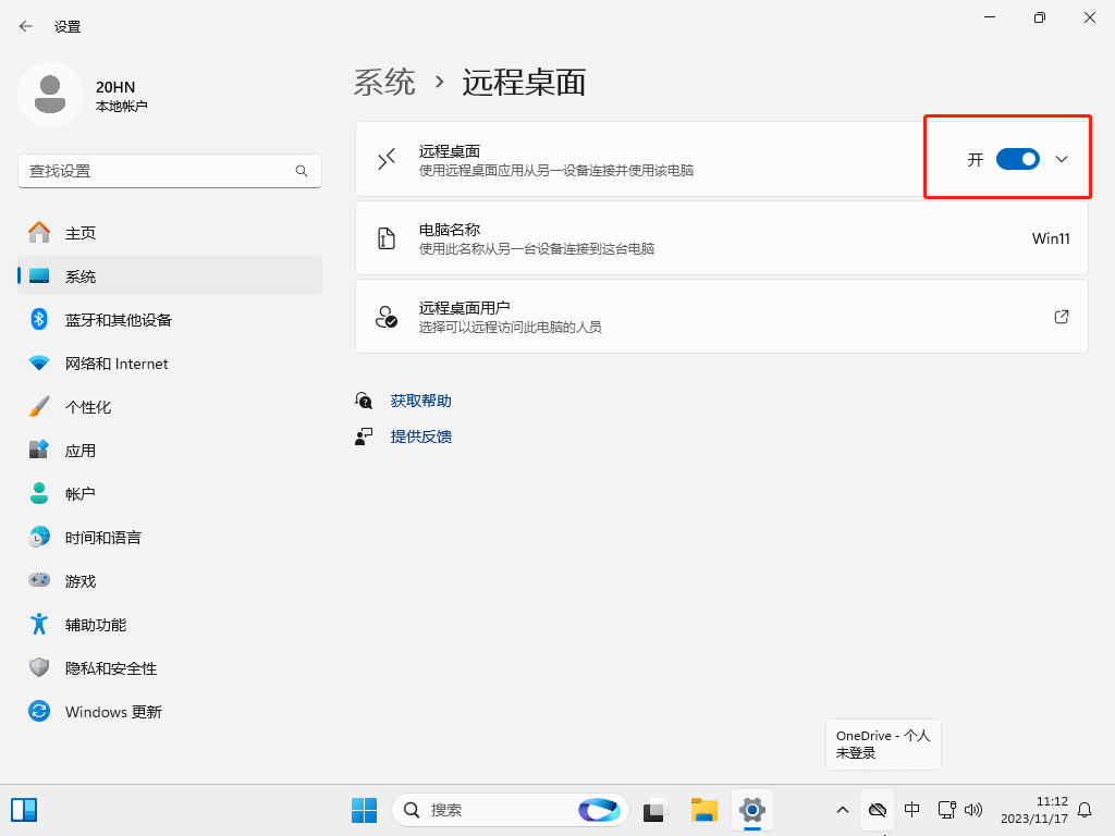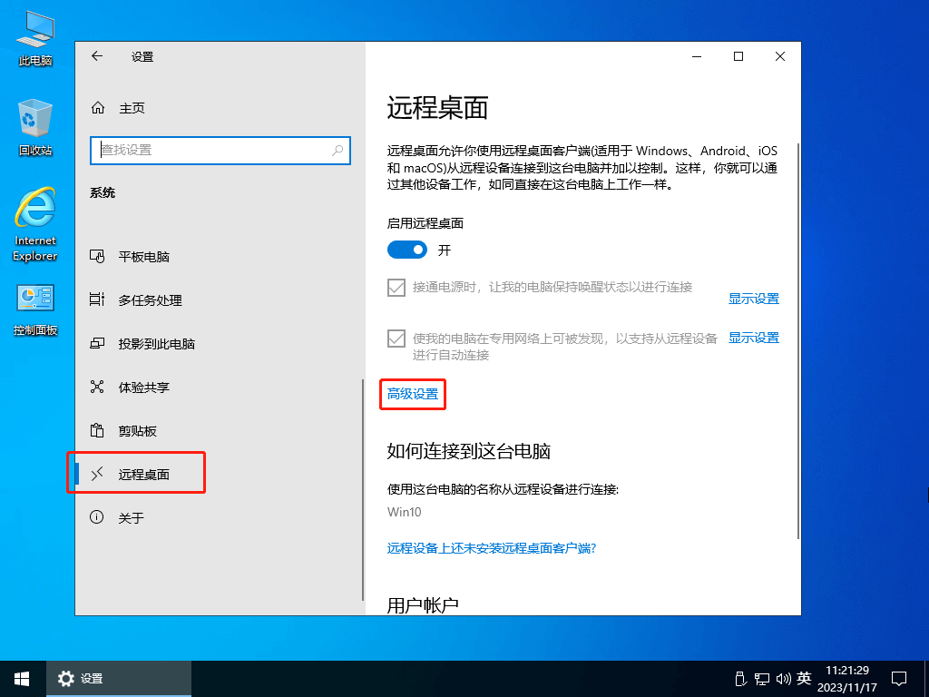 2,被控端启动远程桌面,系统-远程桌面-按钮点开;