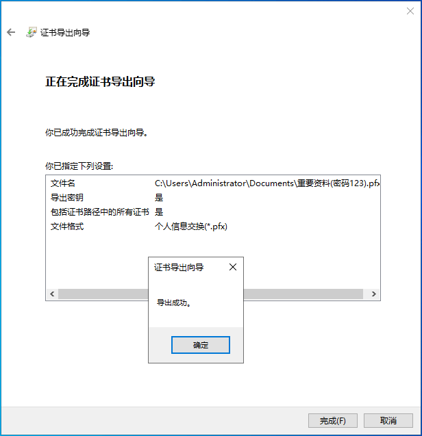 6、导出成功;