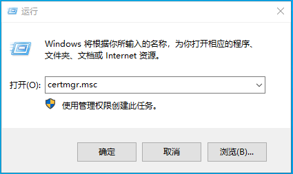 1、“Win+R”运行,输入“certmgr.msc”,回车;