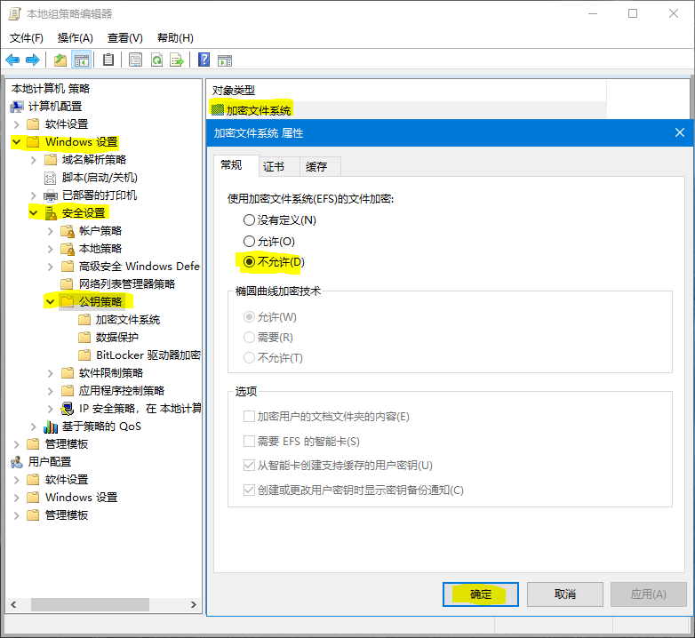 右键加密文件系统,属性,不允许,即可禁用EFS。