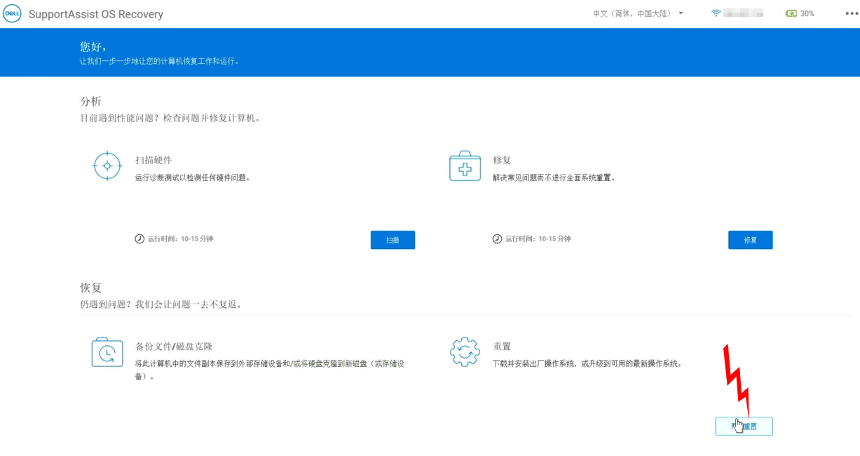 下面介绍DELL笔记本自带的工厂重置,恢复出厂设置,重置后恢复到你刚买回电脑时的状态,要求硬盘未分过区,没有损坏恢复分区的机器。