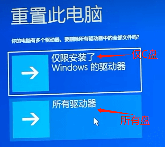 如多个硬盘,按需选择,删除系统盘或所有硬盘盘的文件;