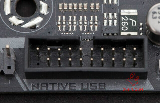 USB 3.0又名USB 3.1 Gen 1,这个接口明显的标志就是19针(多余的一针是为了防止插反),同时有些USB 3.0会在主板上标明为F_USB 3.0。