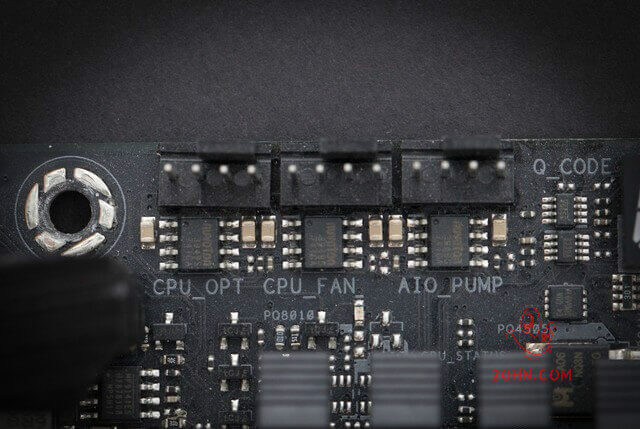 其中CPU_FAN是每个主板必备的针脚,而CPU_OPT和AIO_ PUPM有些主板会没有。理论上这些接针是可以通用的,但是如果将CPU_FAN(4针)插到三针的水冷供电可能会造成控温功能失效,所以最好还是对应插线。