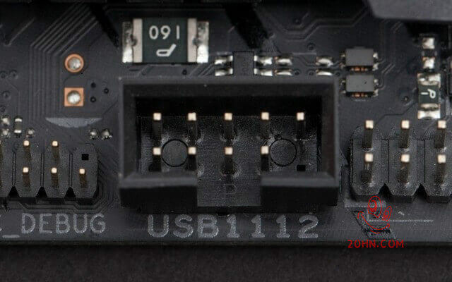 上图的USB 1112是USB 2.0的接口,后面的1112是编号,一般不用理会,特征为上5针下4针名字带USB的接口。