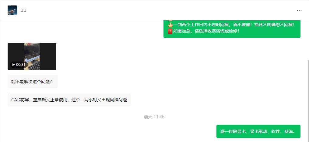 花屏,一般都是显卡问题,要确定排除的话,就是换显卡测试,没条件更换,就先排除驱动、软件、系统。