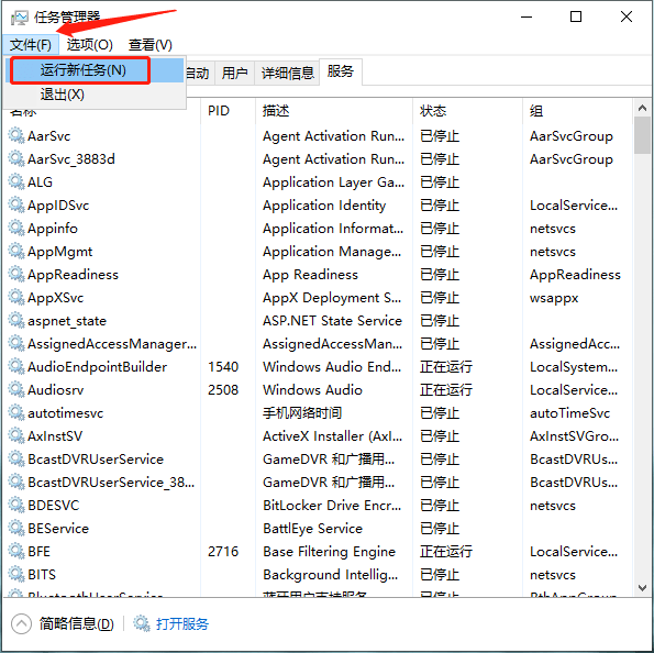 任务管理器运行: