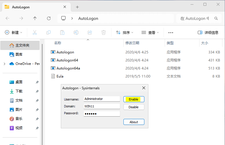 Autologon下载地址 https://learn.microsoft.com/en-us/sysinternals/downloads/autologon