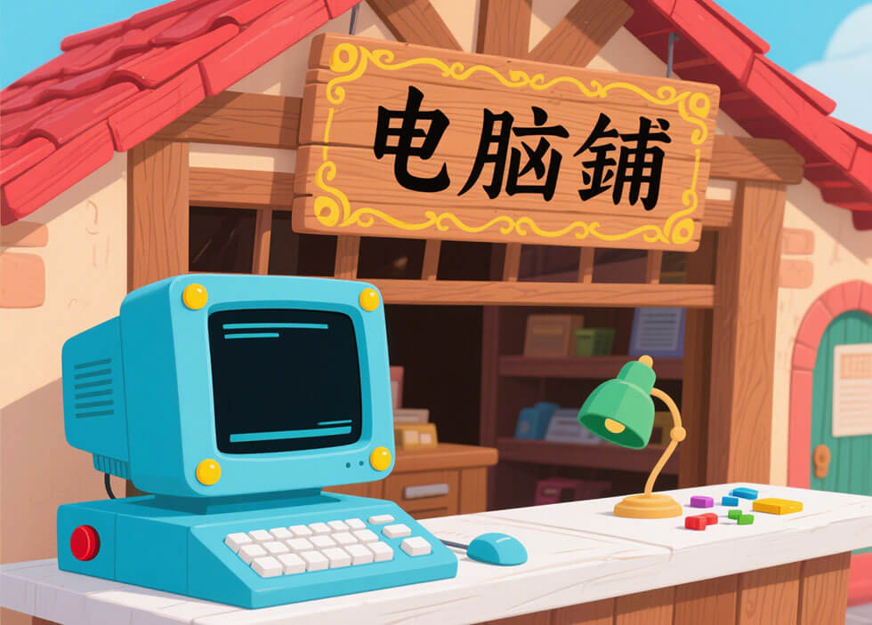 为了让大家更好地记住,我们可以来联想一个场景:你走进一家热闹的电脑铺,师傅正在维修着各种各样的电脑,有笔记本、台式机,还有各种电脑配件。这个时候,你就可以默念 “电脑铺,dnpu”,把这个场景和域名联系起来。