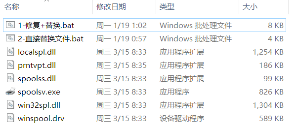 添加了上面方法一和二的“清空 PRINTERS 打印队列文件夹”,“重置打印服务依赖项为 RPCSS”,如成功,则不替换文件。