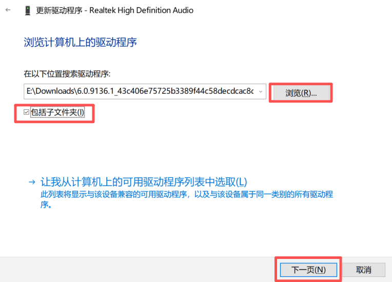 打开设备管理器,找到目标设备→右键→「更新驱动程序」→「浏览我的电脑以查找驱动程序」→选择刚才解压的文件夹→勾选「包括子文件夹」→下一步,系统会自动匹配安装驱动程序;